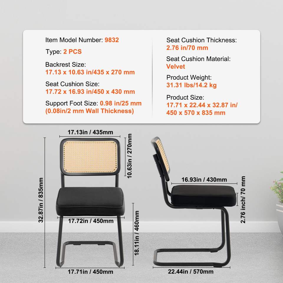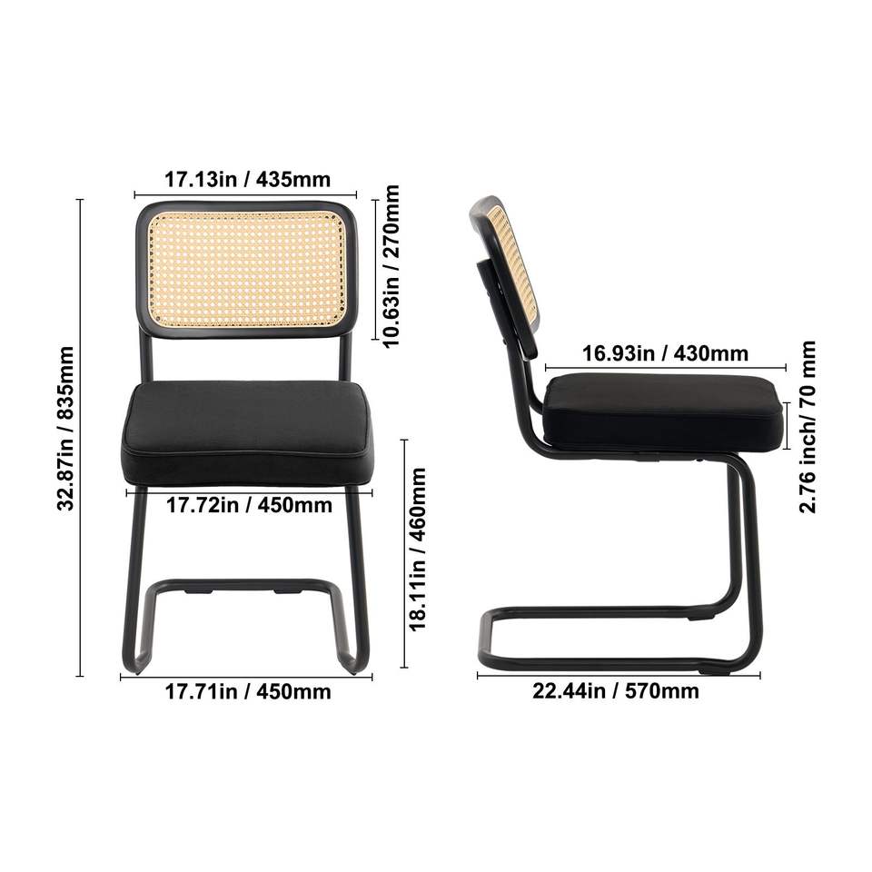 Juego de 2 Sillas de Comedor Modernas de Mediados de Siglo, Sillas Retro con Respaldo de Ratán y Asiento Tapizado en Terciopelo para Comedor