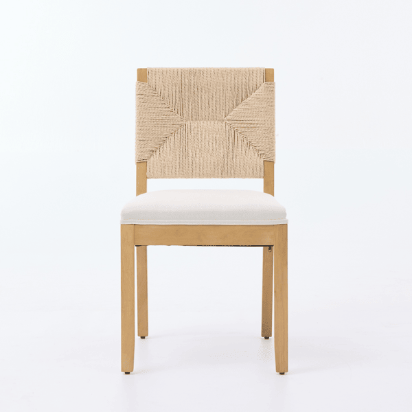 Juego de 2 Sillas de Comedor Modernas de Mediados de Siglo, Base de Madera y Ratán, Tapicería de Lino, Respaldo de Mimbre, Asiento Acolchado para Comedor