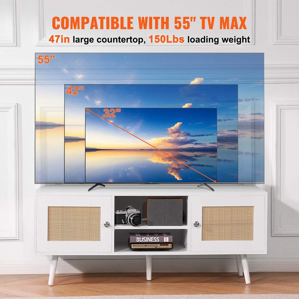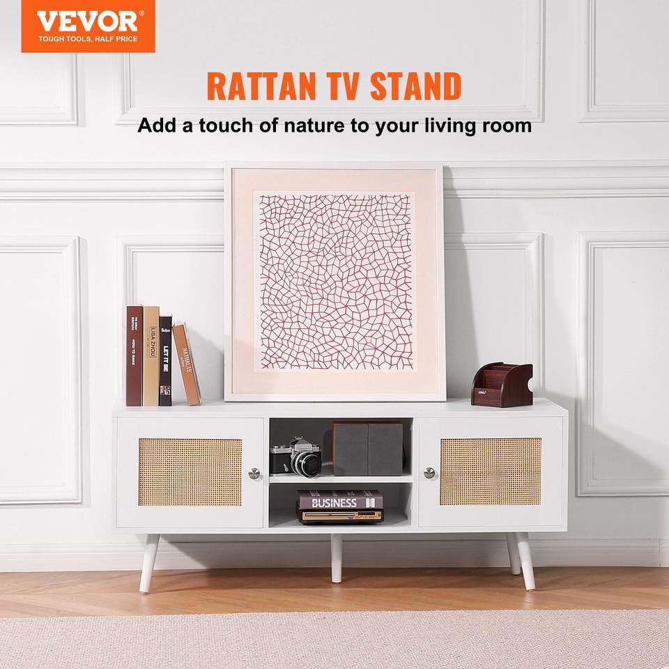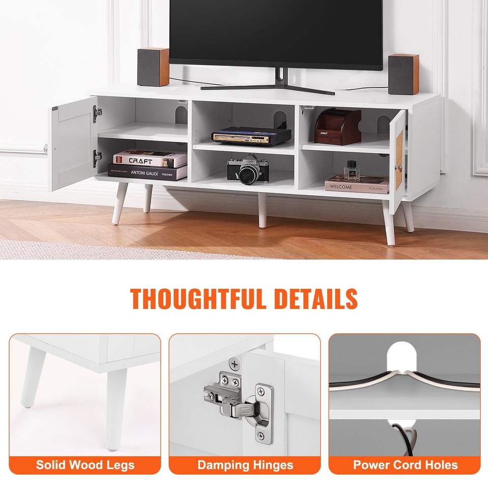 Mueble de TV de Ratán Estilo Moderno de Mediados de Siglo, Mueble de TV Boho con Estantes Ajustables para TV de 55 Pulgadas, Consola Livi