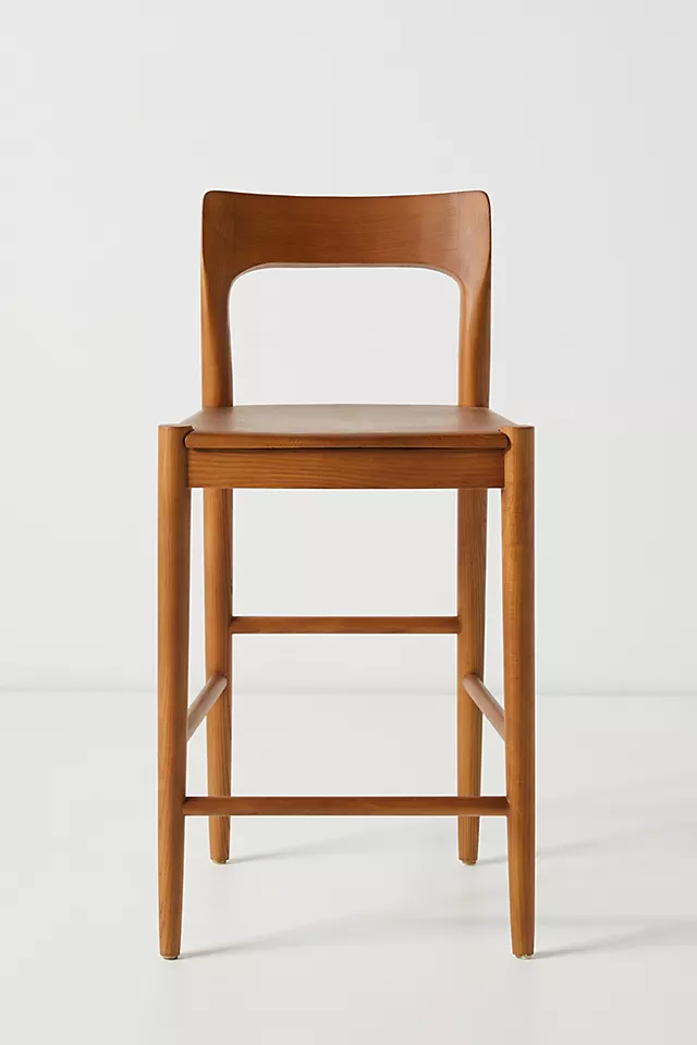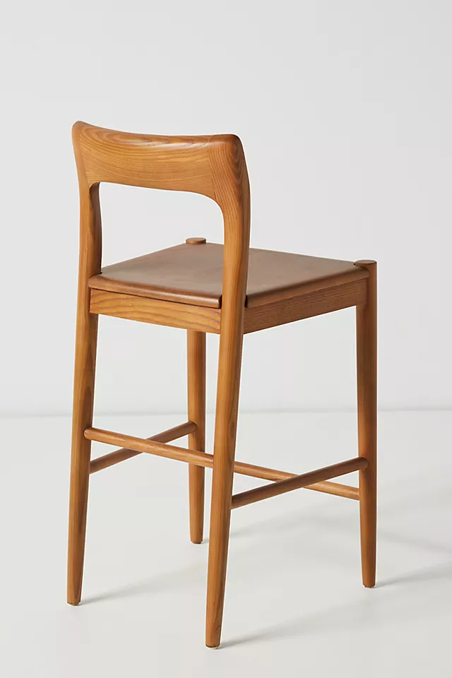 Taburete de Bar de madera moderno de mediados de siglo con parte trasera recortada