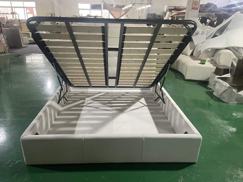Cama Doble Moderna de Mediados de Siglo con Diseño Personalizado, Almacenamiento y Colchón Suave
