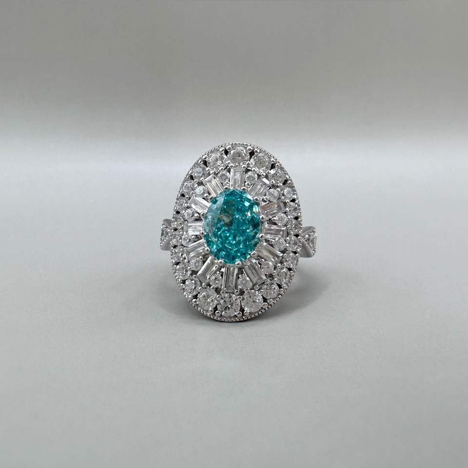 Anillo de Plata de Ley S925 con Piedra Azul Palaiba Estilo Antiguo, Anillo Ovalado de Lujo y Moda