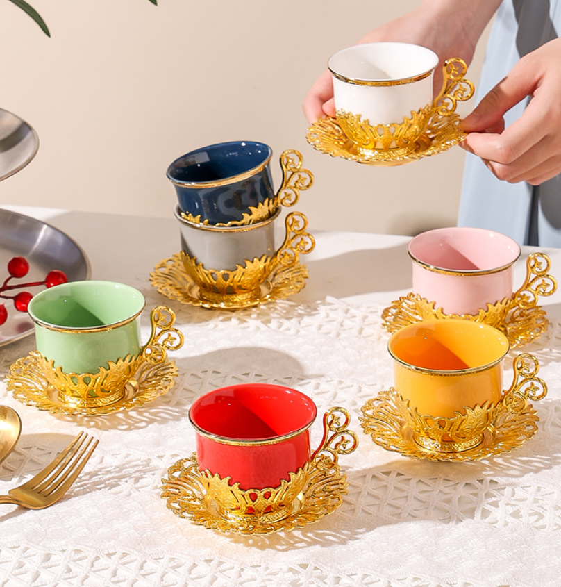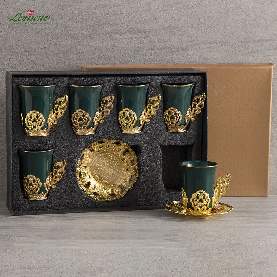 Taza de cerámica con borde dorado hecho a medida con mango dorado de lujo turco de estilo de Oriente Medio personalización al por mayor