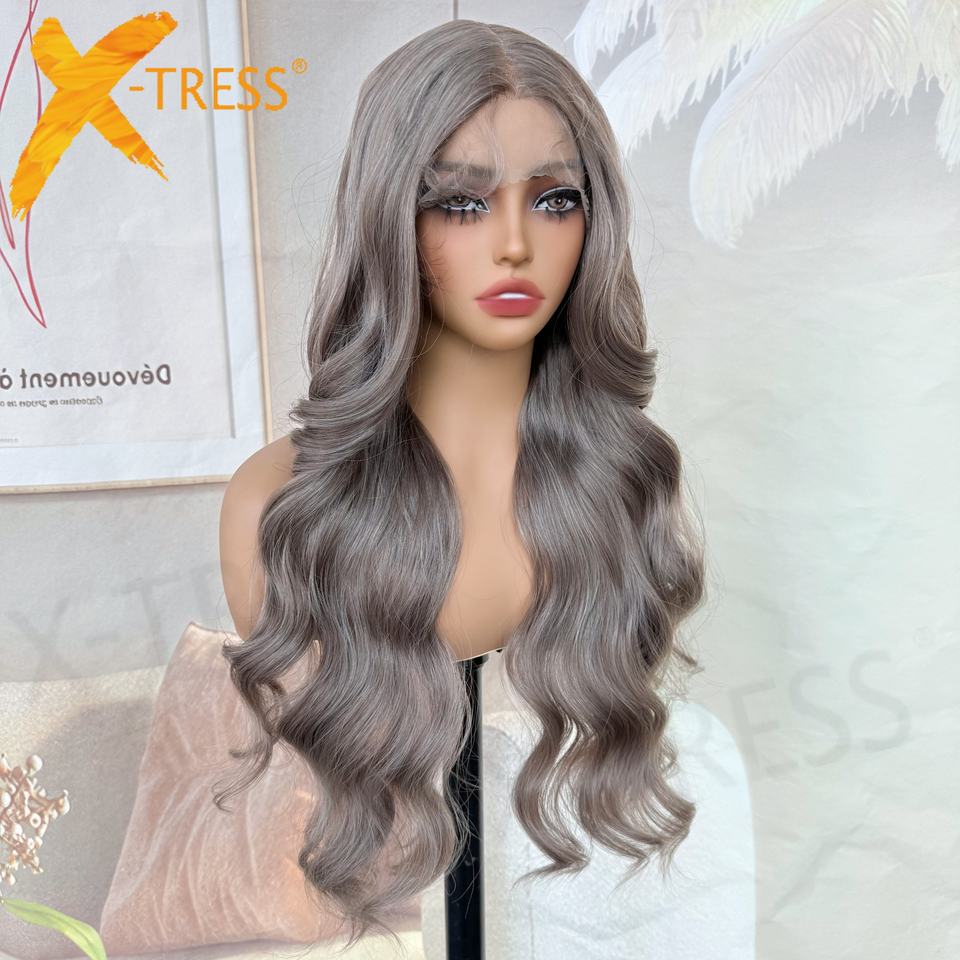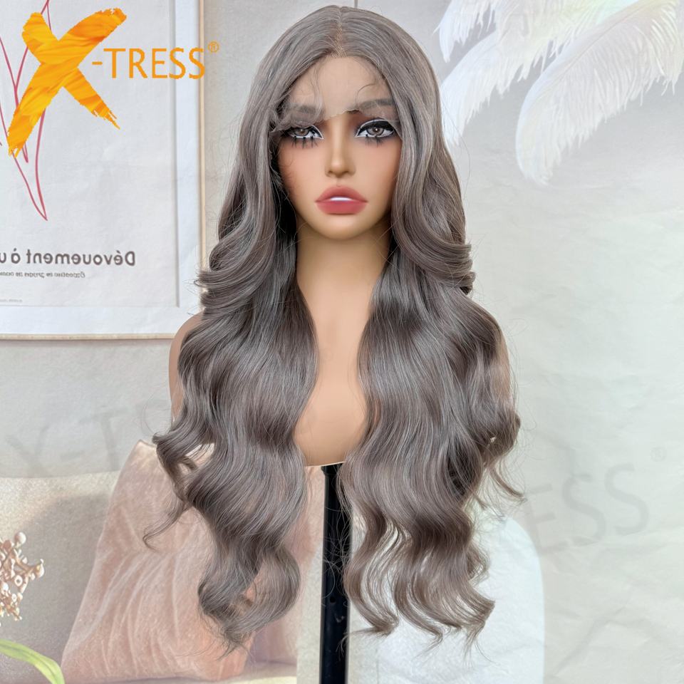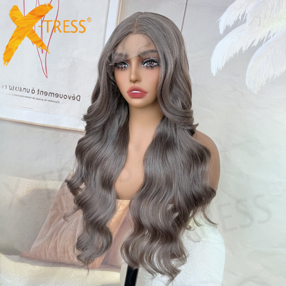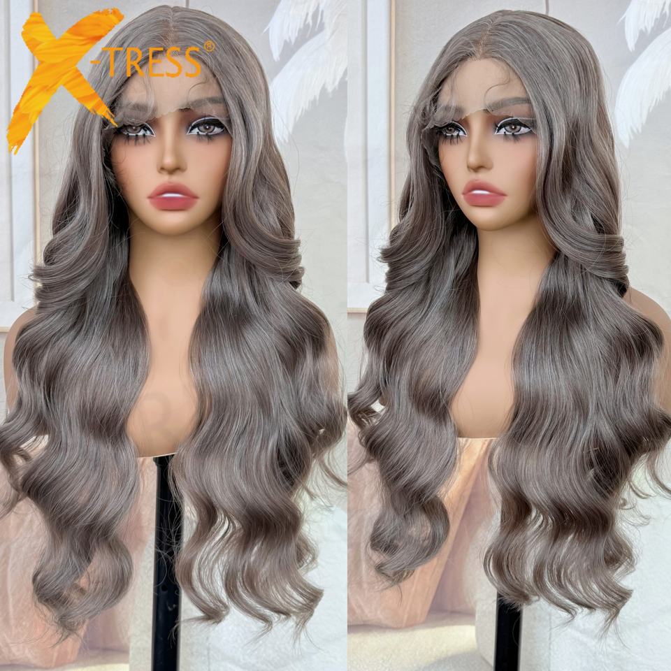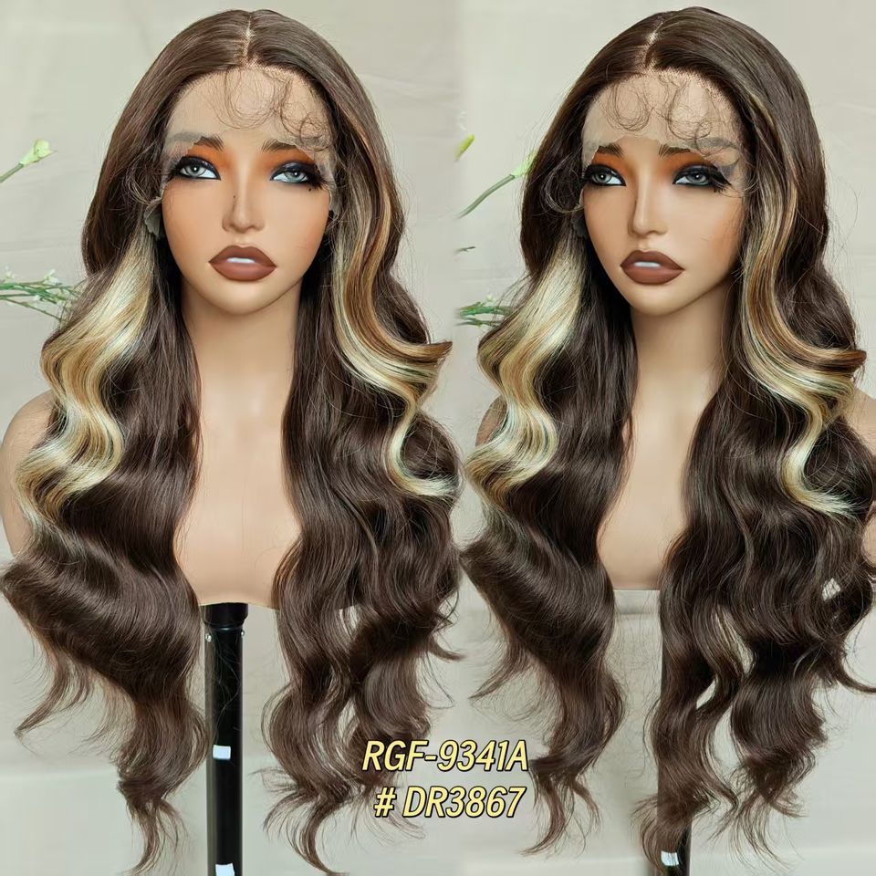 Pelucas delanteras de encaje de parte media, resistente al calor, resaltado, ahumado, Multicolor, pelucas largas y rizadas, peluca sintética ondulada para mujer