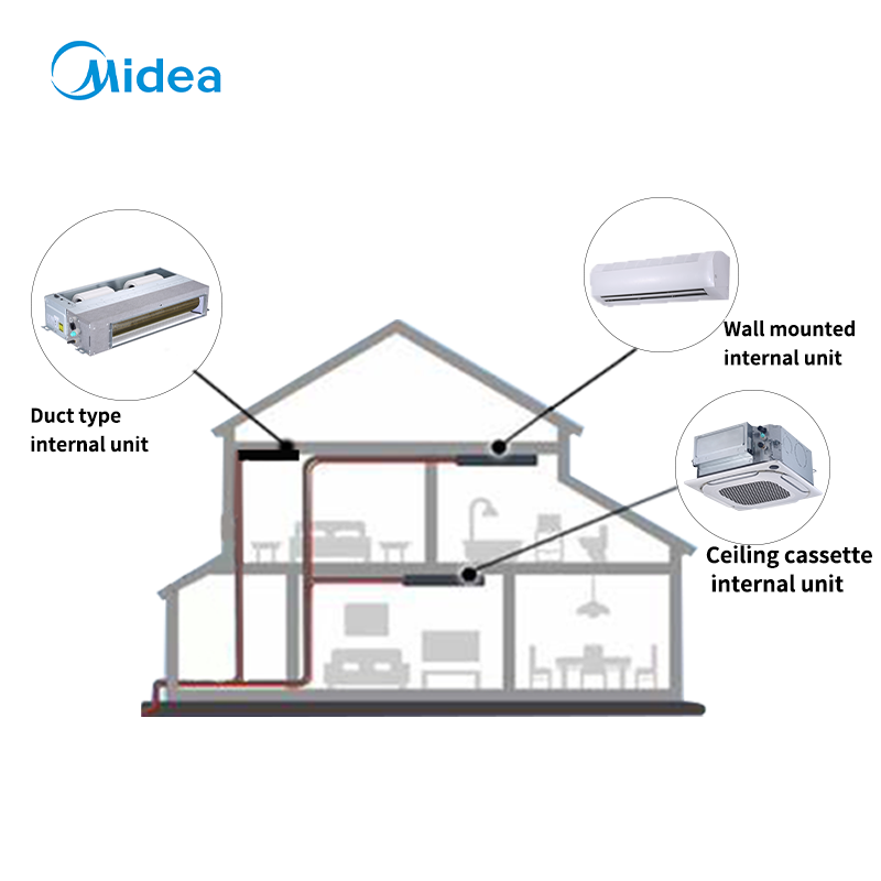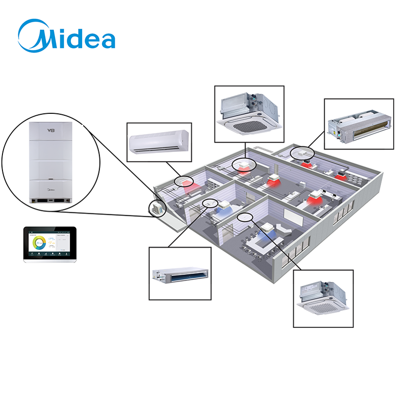 Marca Midea Tecnología avanzada de subenfriamiento 18hp 50kw Calefacción y refrigeración 380-415V Aire acondicionado central para edificios de oficinas
