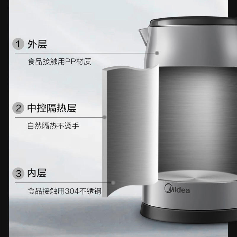 Hervidor eléctrico Midea de 2L+ con temperatura constante, función para mantener el calor y apagado automático para uso en el hogar y el dormitorio