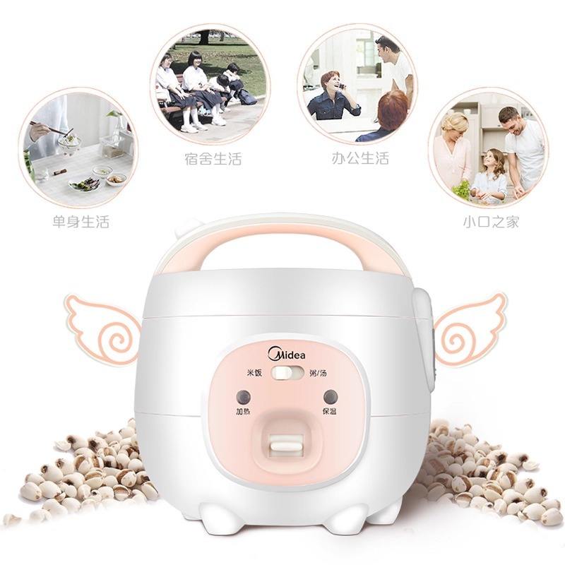 Mini olla arrocera Midea de 1,6 l con forma de tambor, eléctrica portátil para el hogar, dormitorio, estudiantes, sartén antiadherente