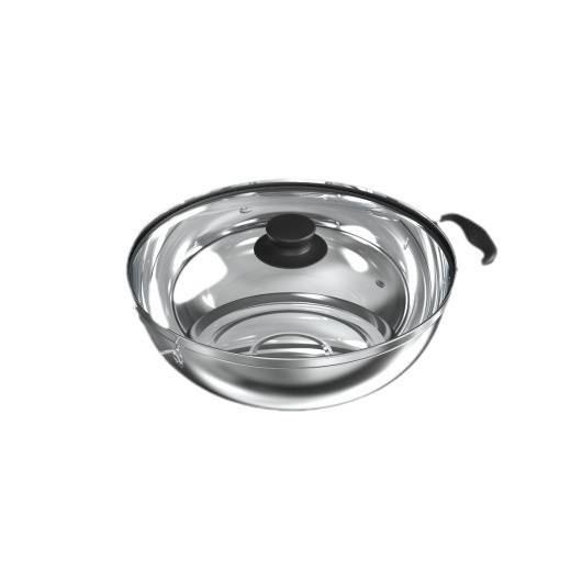Olla de Inducción Multifuncional Midea con Tapa de Vidrio Templado a Prueba de Explosiones, Color Plateado Glaciar Negro, 26 cm