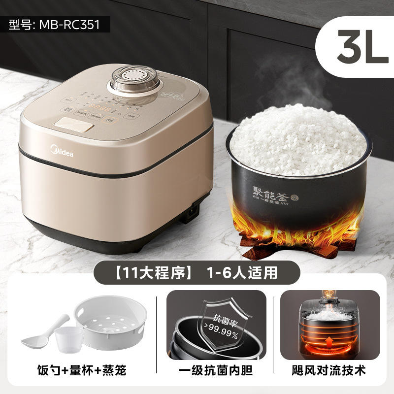 Olla Arrocera Multifuncional Midea de 3L, de Acero Inoxidable, con Forma de Tambor, Cocción Rápida, Eléctrica, con Función de Reserva