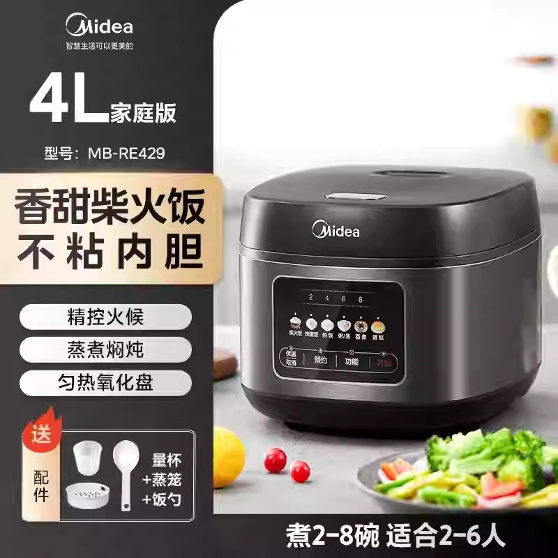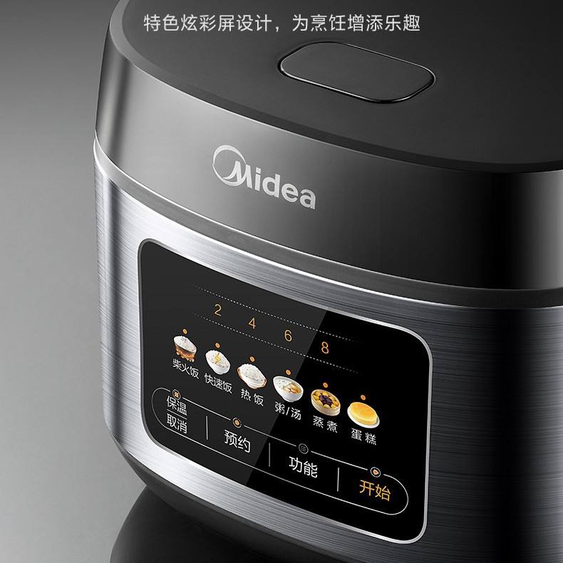 Olla Arrocera Midea de 4L con Forma de Tambor, Temporizador Inteligente, Multifuncional, Eléctrica, de Acero Inoxidable, Color Gris Titanio Elegance