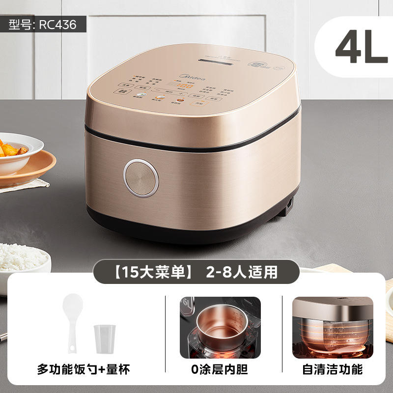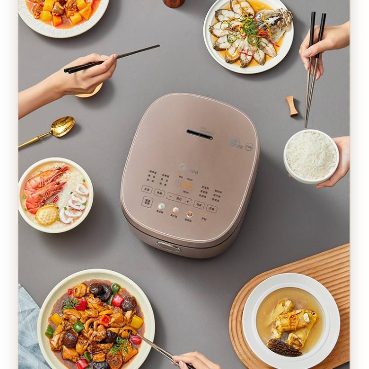 Olla Arrocera Midea de 4L, Forma de Tambor, Olla Interior de Acero Inoxidable, Multiusos, Eléctrica, Color Dorado