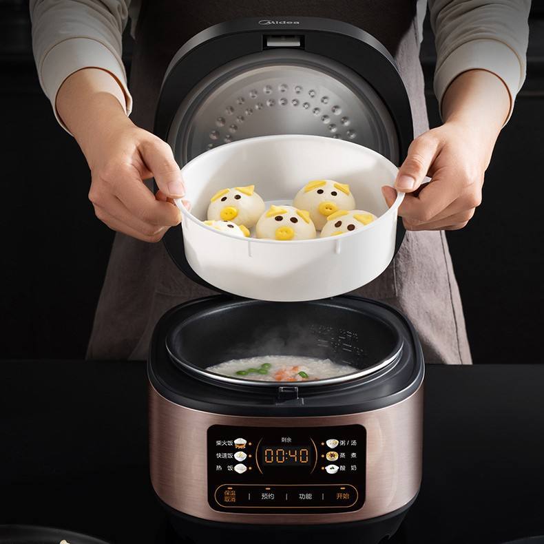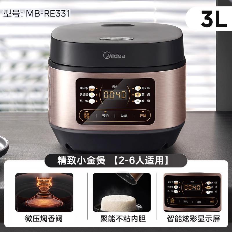 Olla arrocera inteligente Midea de 3L, mini olla eléctrica multifuncional para 3-4 personas, cilindro de acero inoxidable color champán dorado
