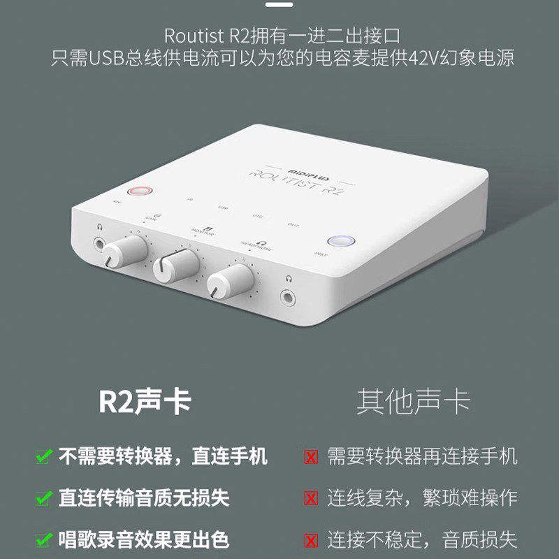 Tarjeta de Sonido Midiplus R2, Micrófono para Transmisión en Vivo, Grabación, Canto, Karaoke, Juego Completo para Computadora