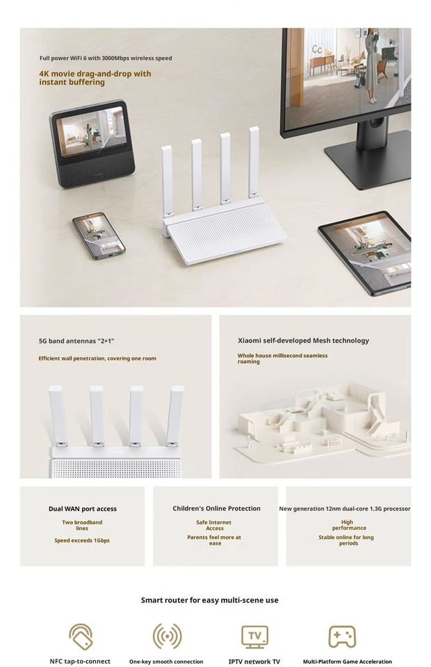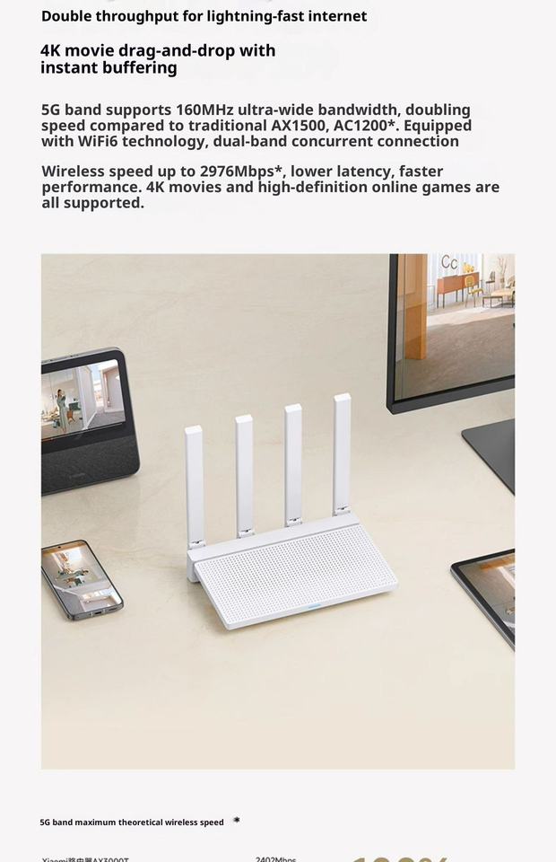 Router Mijia Xiaomimi de 3600 Mbps de Doble Banda con 4 Antenas, Router Wifi OpenWrt, Wi-Fi 7, Velocidades de Red Rápidas, Dispositivos Wifi.