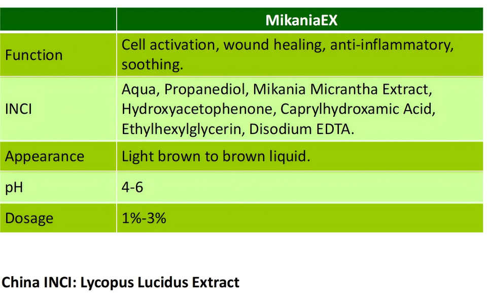 INCI:Aqua, Propanodiol, Extracto de Mikania Micrantha