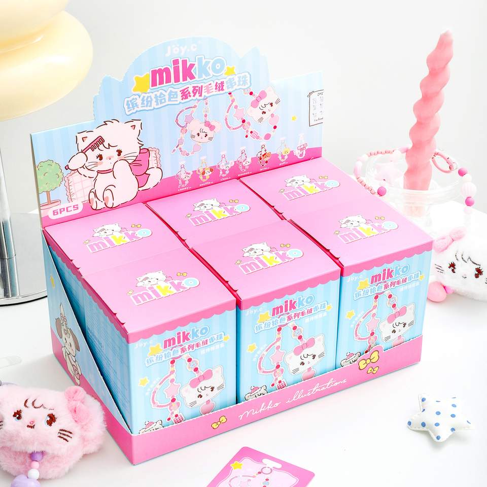 Caja Sorpresa de Abalorios de Peluche de la Colección Colorida Mikko, Set Completo de 6 Llaveros Coleccionables Oficiales con Licencia en Caja Ciega
