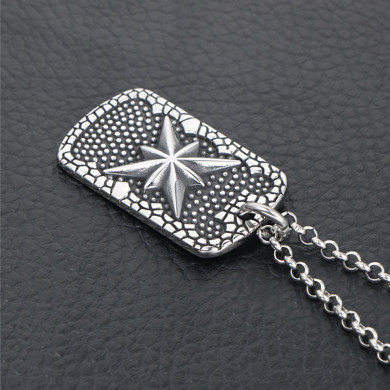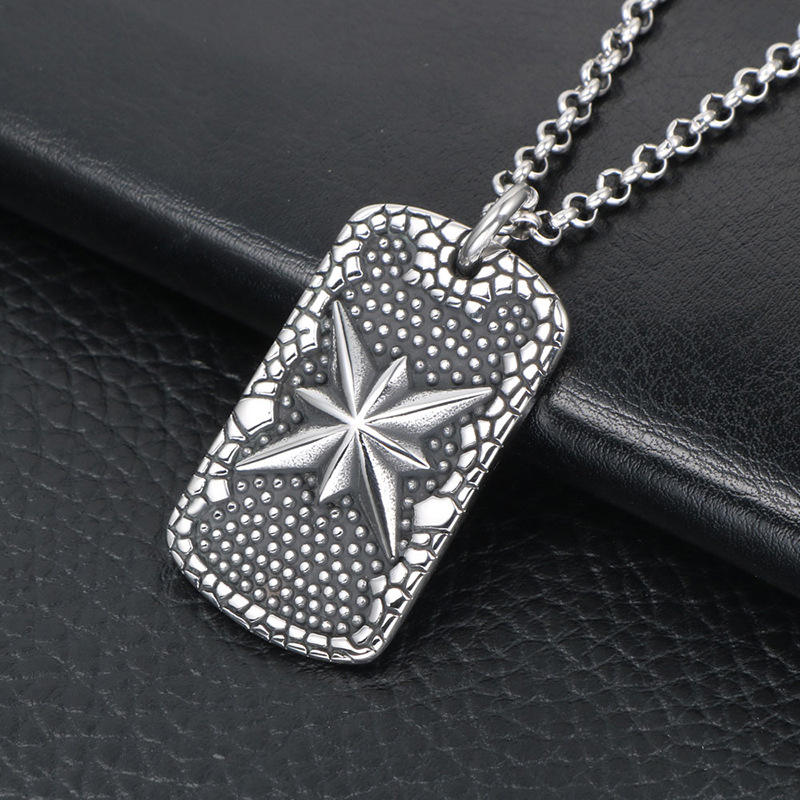 Colgante con etiqueta militar con patrón de estrella de ocho puntas, collar de acero de titanio para hombres y mujeres SP737