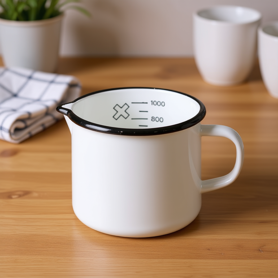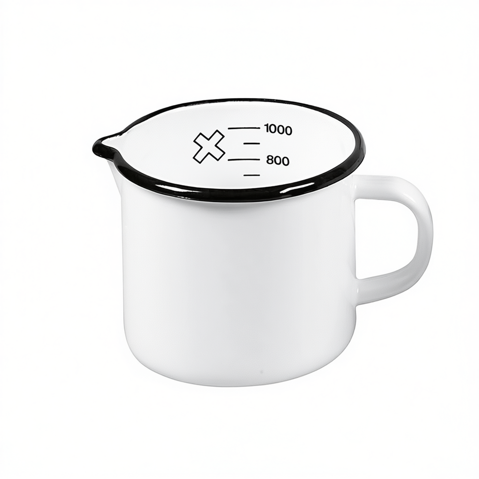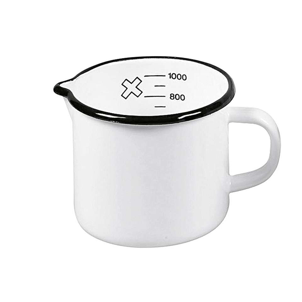 Olla para leche con escala y boquilla 1 L 12 cm esmaltada blanca
