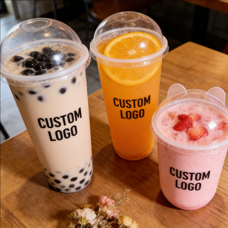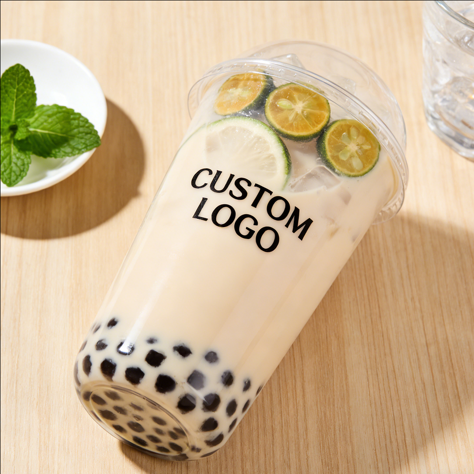 Vaso de Plástico Redondo de 90 mm y 32 oz para Té de Burbujas, Personalizado para Té con Leche y Boba