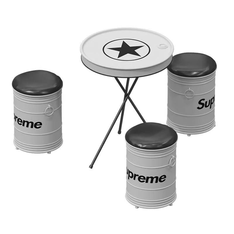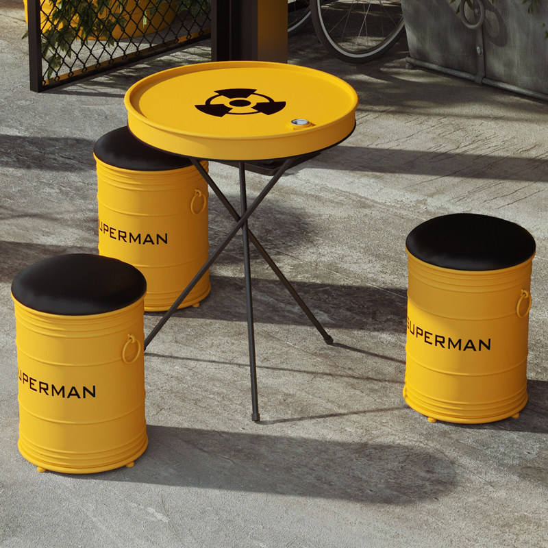 Conjunto de Mesa y Sillas para Cafetería de Té con Leche, Tambor de Aceite Personalizado, Estilo Creativo, Comercial, Industrial, Moderno, Metálico, Área de Descanso
