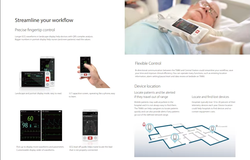 Monitor Veterinario Portátil Mindray TM80 con Pantalla Táctil de 3.5'', Resistente al Agua IPX7, Telemetría Inalámbrica para Clínica Veterinaria