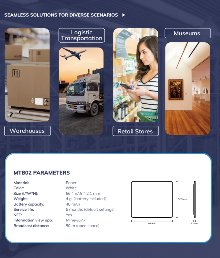 Minew - Etiqueta de Seguimiento de Activos Inalámbrica Ultrafina, Ibeacon Bluetooth Ble 5.0, Etiqueta Adhesiva MTB02 con Batería de Papel