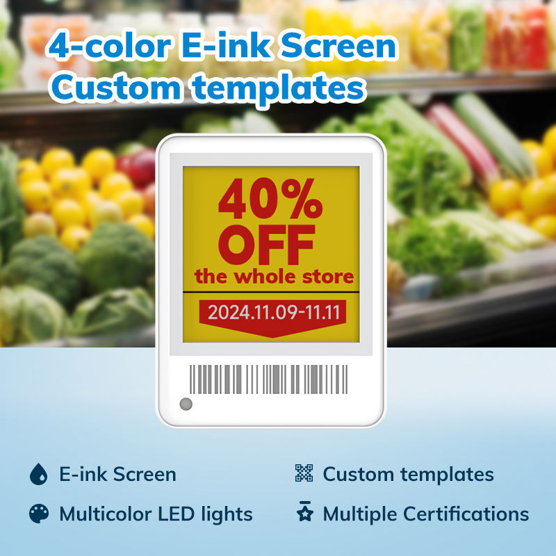 Etiqueta Electrónica de Estante (ESL) MinewTag de 1.54 Pulgadas con Tinta Electrónica (E-Ink) - Multicolor (Negro/Blanco/Rojo/Amarillo) para Uso en Comercios Minoristas