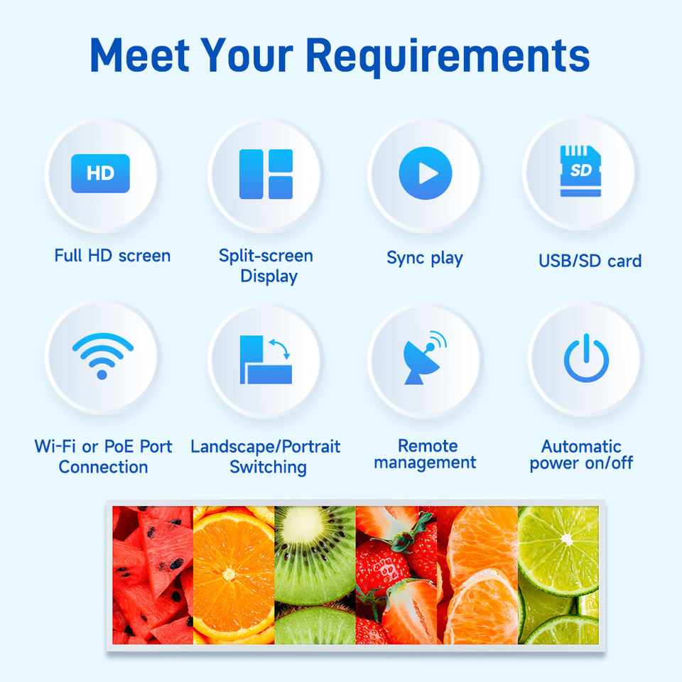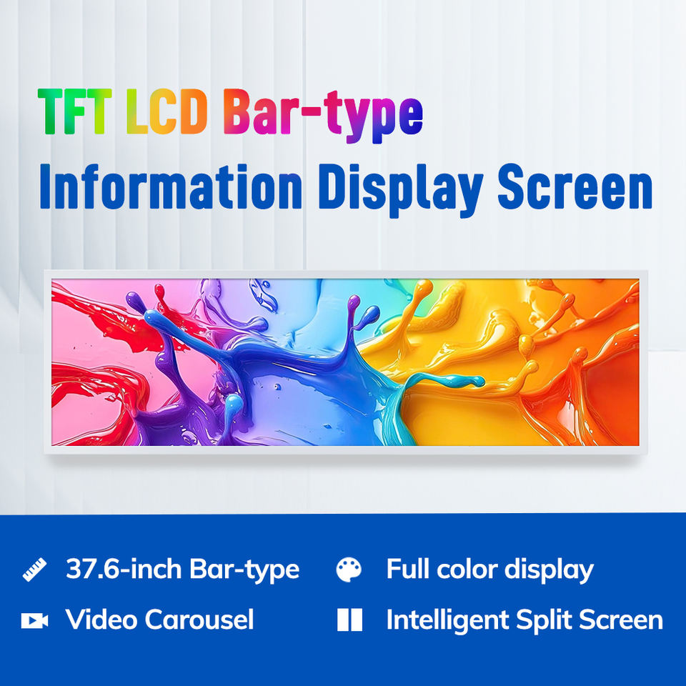 MinewTag Pantalla LCD de 37.6 Pulgadas para Interiores, Barra Extensible para Exhibición en Pared, Reproductor de Publicidad Interior, Pantalla LCD Estirada para Negocios