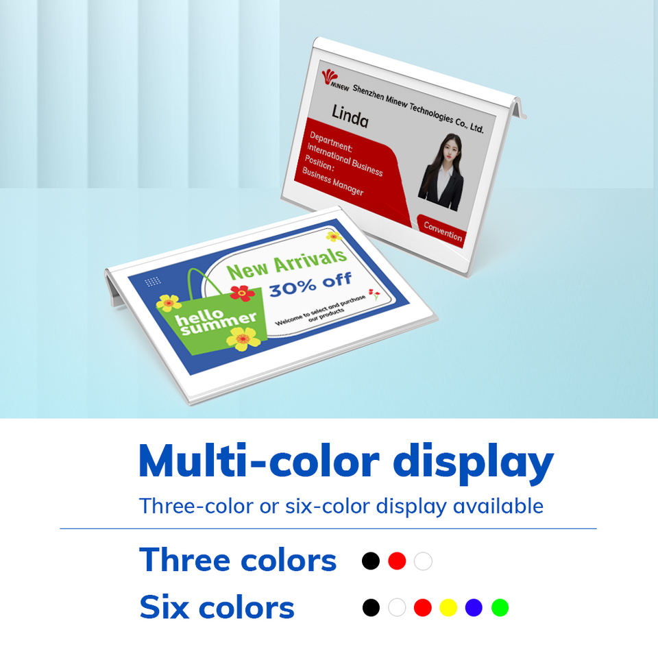 MinewTag - Letrero Electrónico Reutilizable de 7.3 Pulgadas, Delgado, con Inclinación de 10°, 6 Colores, Carga Tipo C, Pantalla de Tinta Electrónica de una Sola Cara, Control por Aplicación de PC, para Oficina