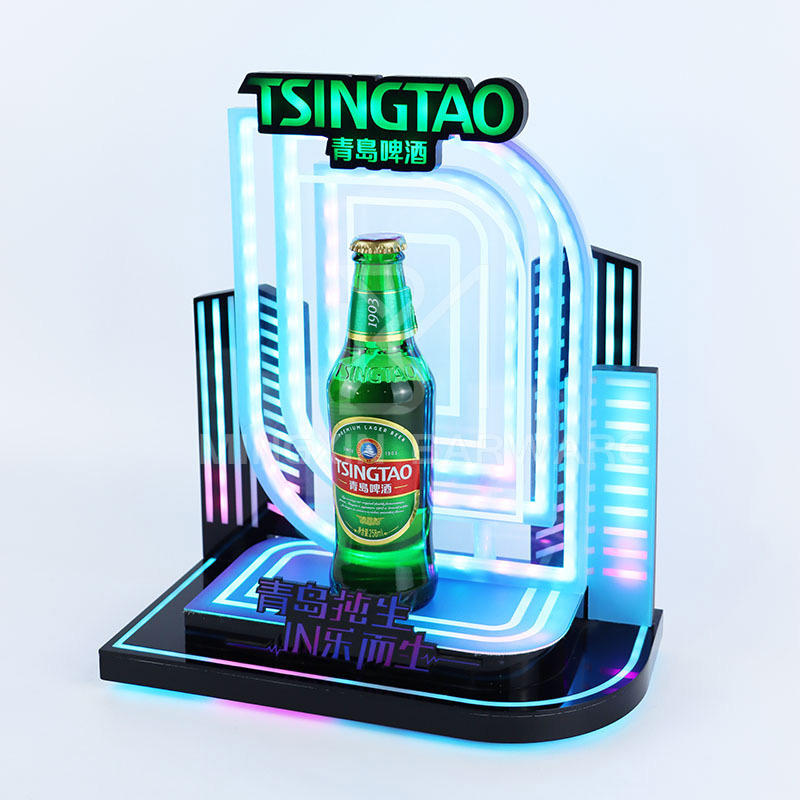 Mingxin Barware Estante de exhibición con luz LED Tsingtao Presentador de una botella de cerveza Botella Presentador glorificador