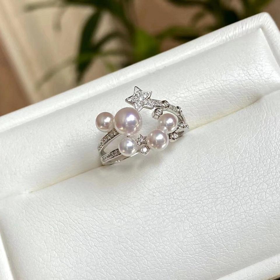 Anillo de Plata de Ley S925 con Incrustaciones de Diamantes y Perlas Estrelladas, Diseño Único y Exquisito de Mingyuan, Elegante y Personalizado