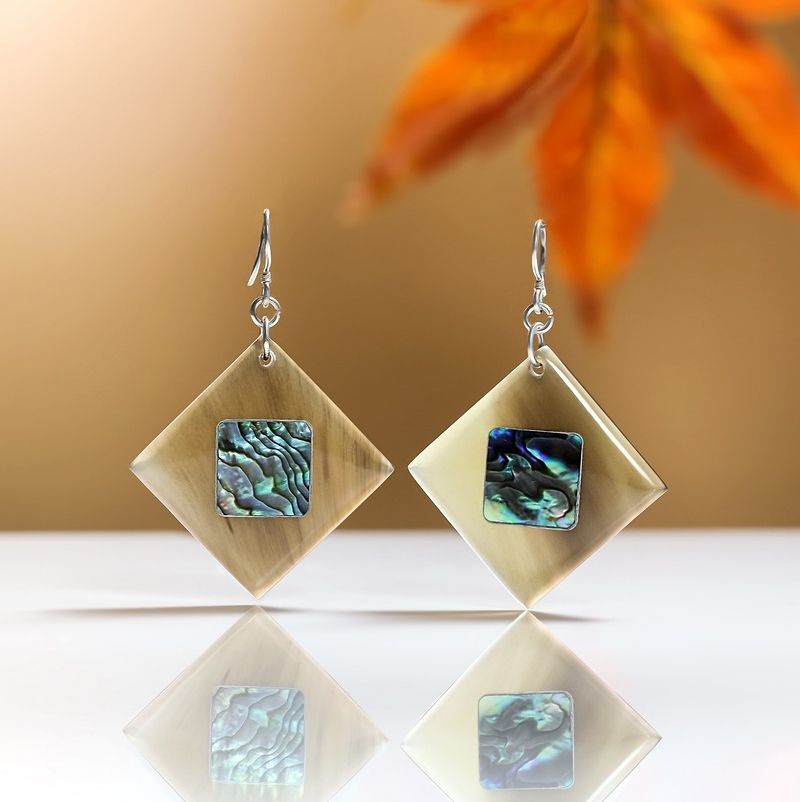 Pendientes de Cuerno de Búfalo Minh Giang, Joyería Tradicional Tallada a Mano, Ligeros y Cómodos, Caja de Regalo Incluida