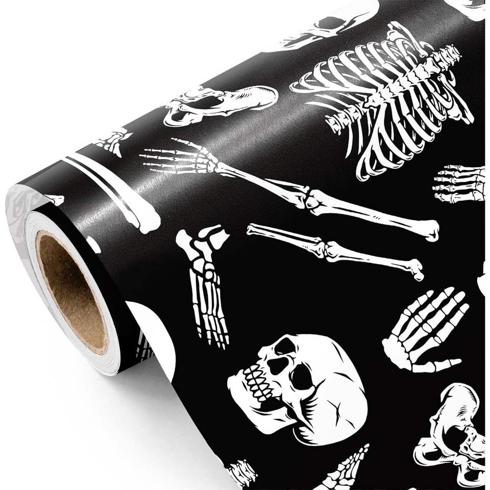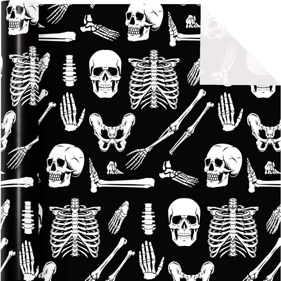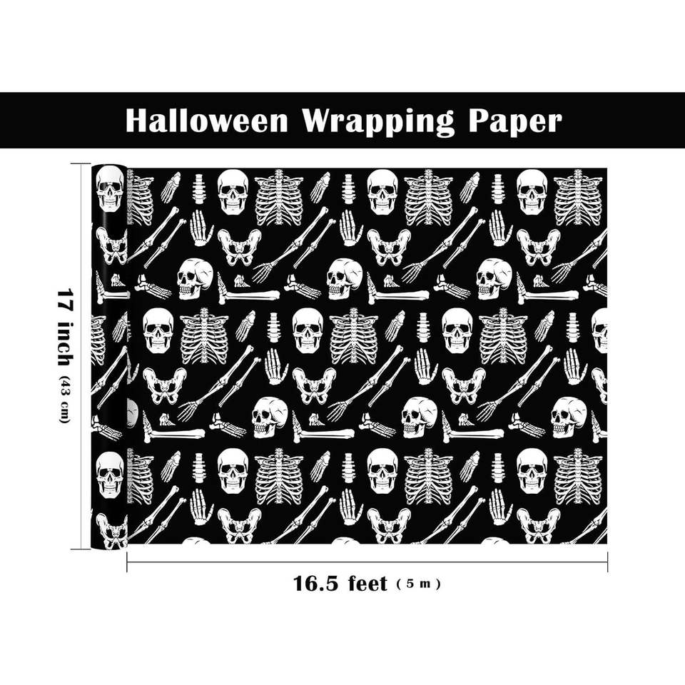 Papel de Regalo con Diseño de Huesos de Esqueleto de 17 Pulgadas x 16.5 Pies para Decoración de Halloween, Envoltura de Regalos de Cumpleaños, Producto de Decoración para Halloween