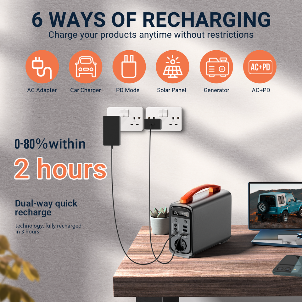 Mini Banco de Energía Portátil de 200W con Salida de CA, Fuente de Alimentación de Respaldo Ligera para Laptop y Fotografía