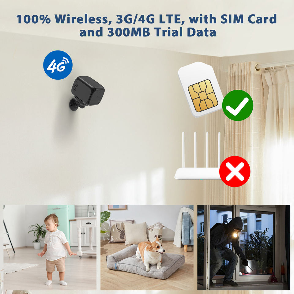 Mini cámara de seguridad inalámbrica 2K HD con AI 4G LTE Sensor CMOS celular Detección de movimiento Visión nocturna Opción de almacenamiento en la nube