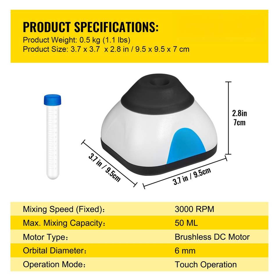 Mezclador Vortex Mini de 3000 RPM con Función Táctil, 50 ml, Diámetro Orbital de 6 mm, para Laboratorio Científico, para Agitar y Mezclar