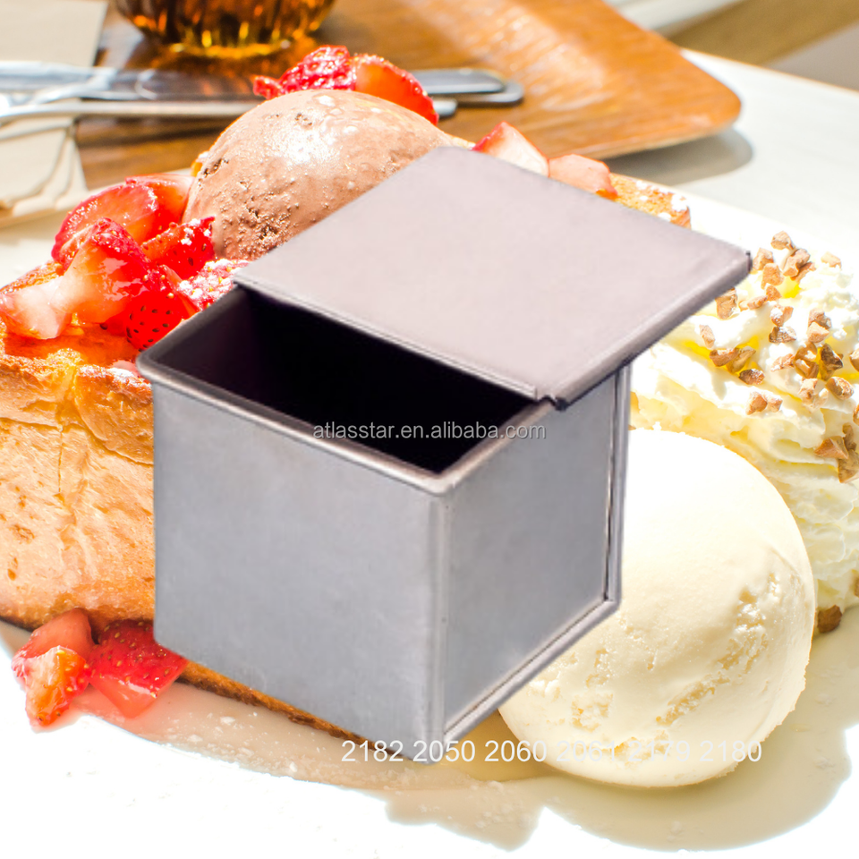 Mini 50g Cubo de aluminio antiadherente Sartén cuadrada para tostadas Pan Bandeja para hornear con tapa para cafetería