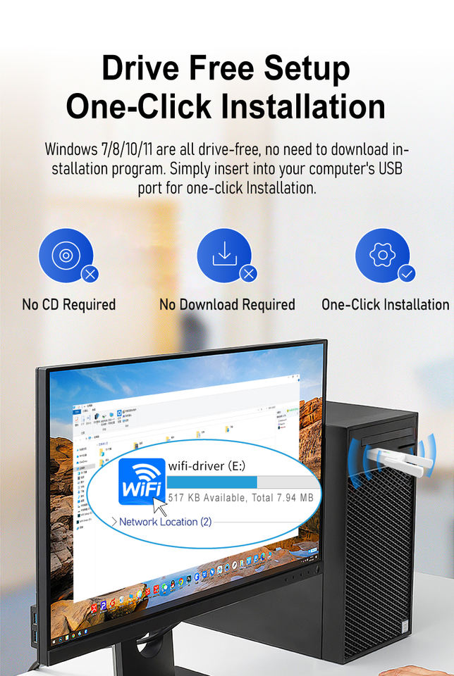 Mini Adaptador USB Inalámbrico AC600 de Doble Banda 2.4GHz 5.8GHz, Receptor Externo para Portátil, Tarjeta de Red Wi-Fi