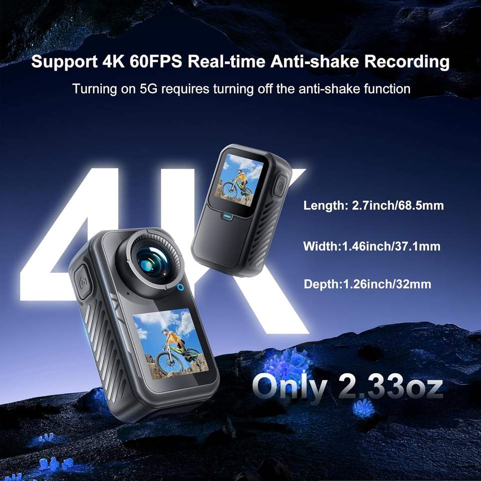Mini Cámara de Acción 4K 128GB CMOS con Pantalla de 1.3" y Distancia Focal de 30mm, Estabilización EIS, Resistente al Agua para Aventuras al Aire Libre y Grabación de Mascotas