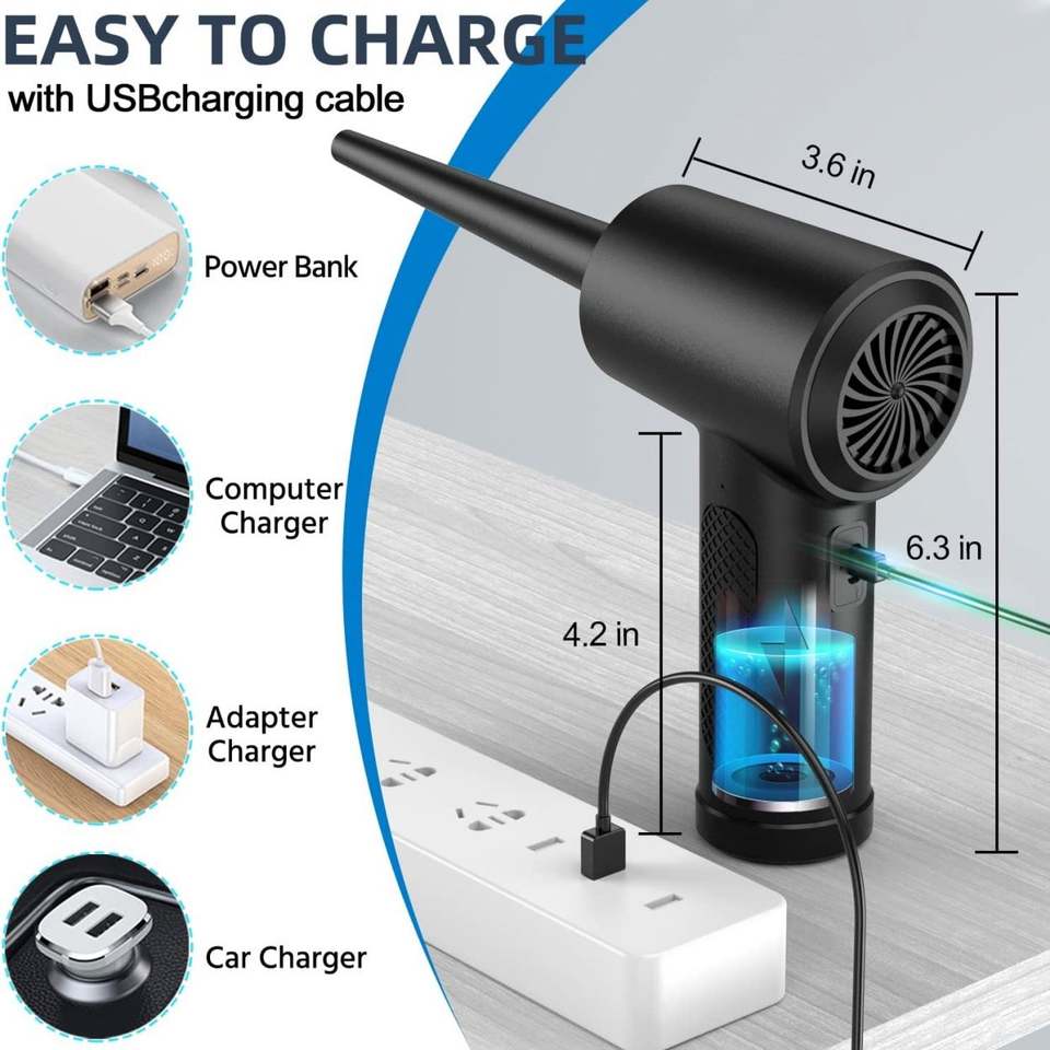 Mini Soplador de Aire para Auto, PC, Teclado de Computadora, 51000 RPM, Inalámbrico, Elimina el Polvo, 3 Velocidades, Soplador Eléctrico Comprimido de 51000 RPM para Secar el Auto