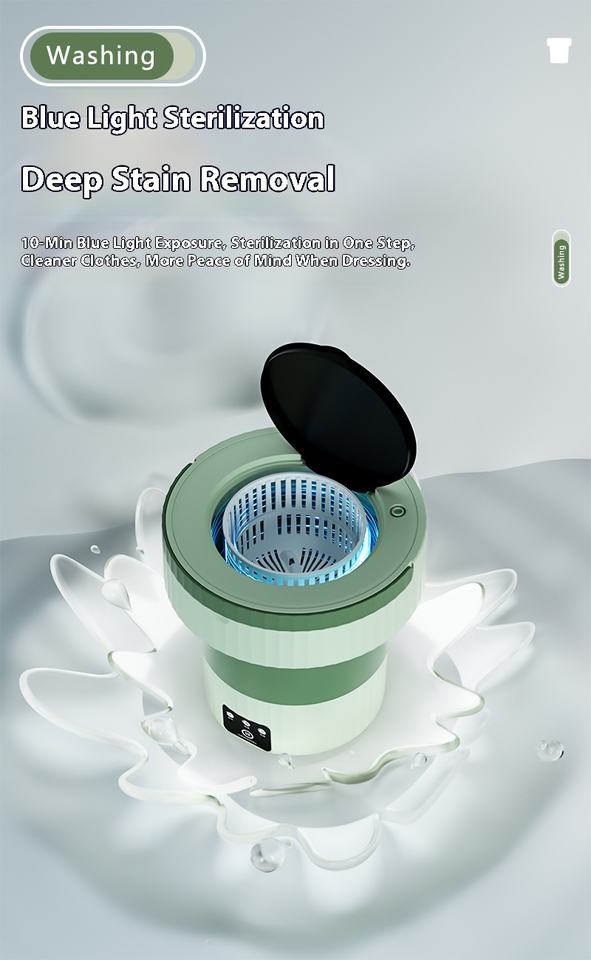 Mini Lavadora Automática Plegable, Flexible, Potente, Limpieza Profunda con Esterilización con Luz Azul, Portátil para Uso Comercial