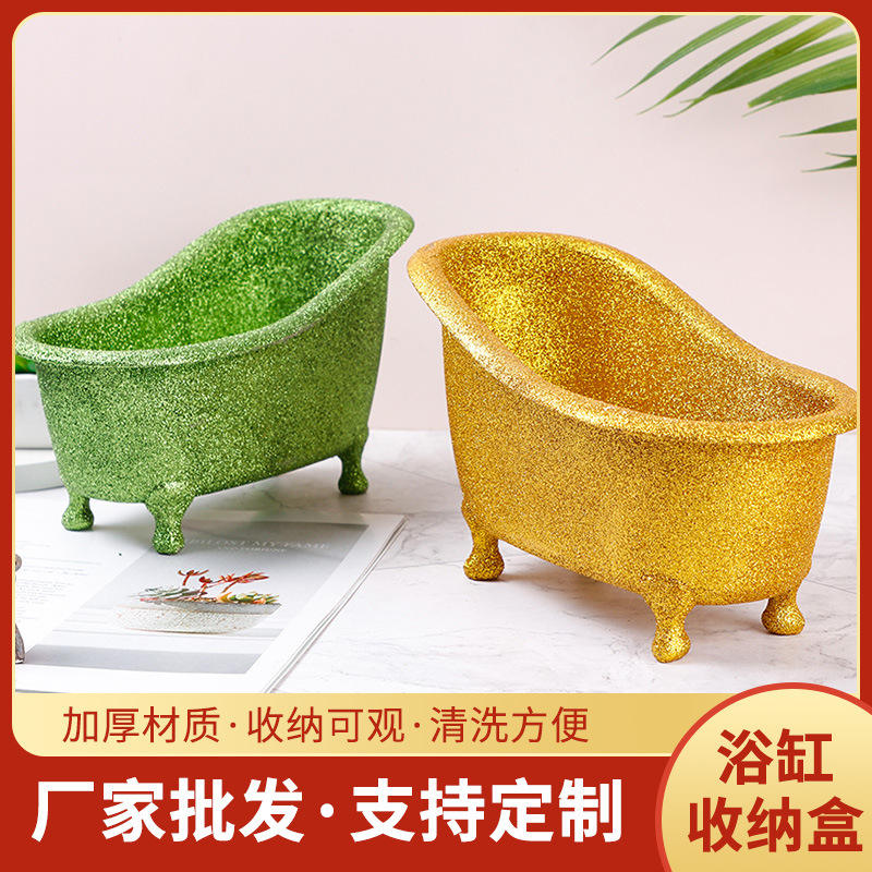 Mini Caja de Almacenamiento para Bañera, 0.5L, Plástico Galvanizado, Organizador de Cosméticos de Escritorio, Color Sólido, Diseño de Cuatro Esquinas