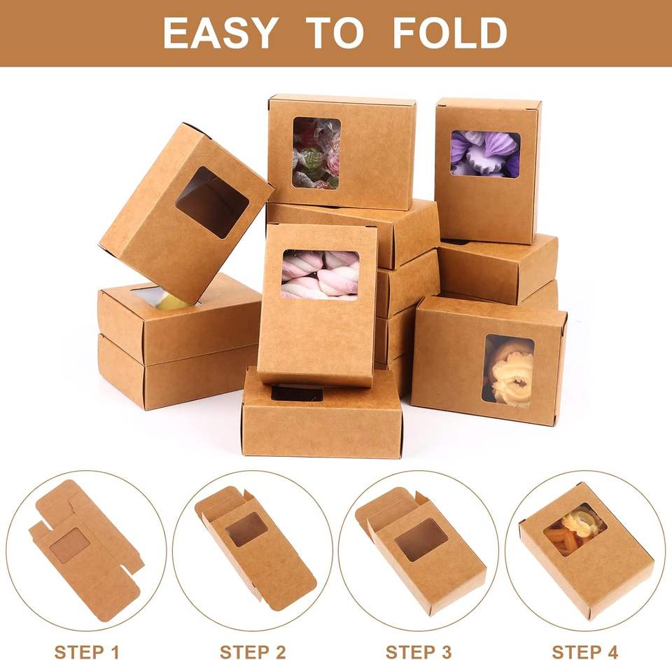 Cajas Rectangulares Pequeñas de Papel Kraft con Ventanas Transparentes