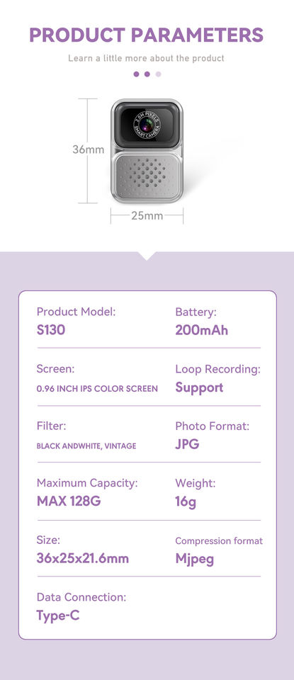 Mini Cámara S130 grabadora de vídeo de bolsillo portátil para viaje usable deporte acción Cámara collar Cámara