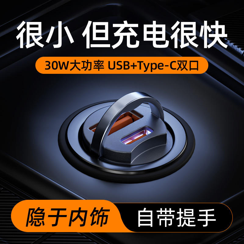 Mini Cargador de Coche de 30W, USB Tipo A y Tipo C, Carga Rápida, Cableado, 12V, Doble Núcleo, Control Inteligente de Temperatura, Múltiples Protecciones de Seguridad