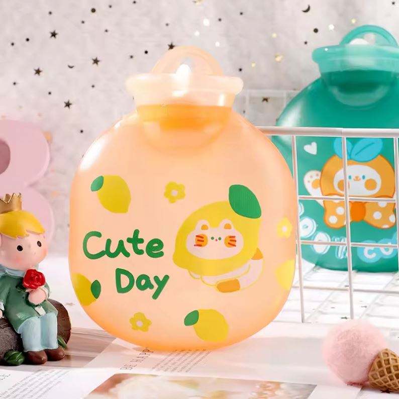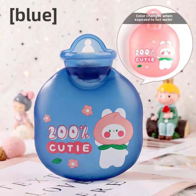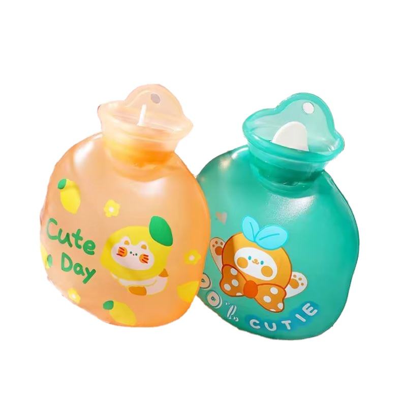 Mini botella de agua caliente de PVC y goma de dibujos animados para calentar las manos, eficaz para aliviar el dolor menstrual