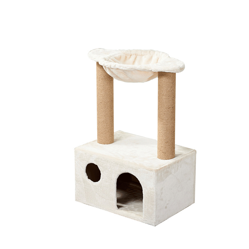 Torre rascadora clásica de madera para gatos con cama acogedora y hamaca, postes rascadores de sisal, casa de juegos estable de felpa para gatos