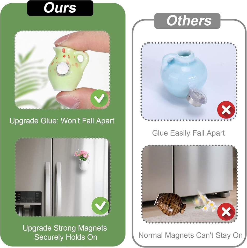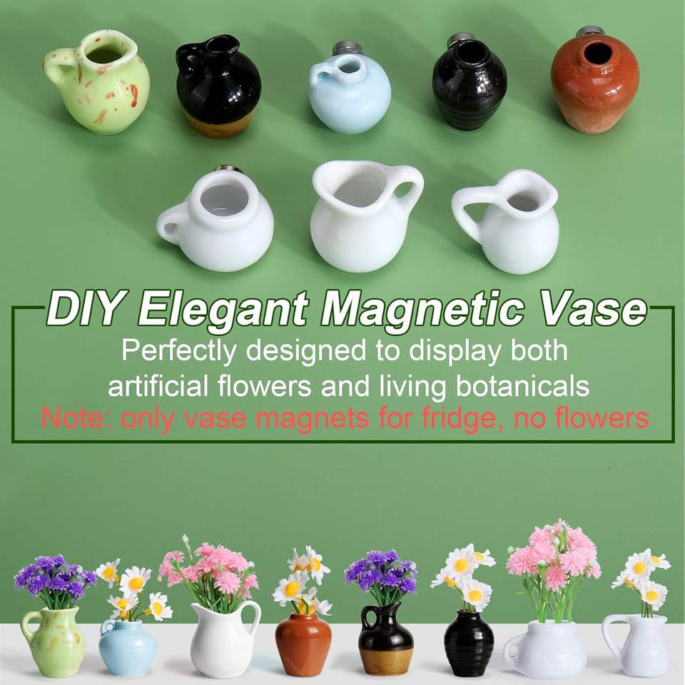 Mini imanes de cerámica para nevera con forma de florero, lindos imanes pequeños con flores artificiales para refrigerador u oficina