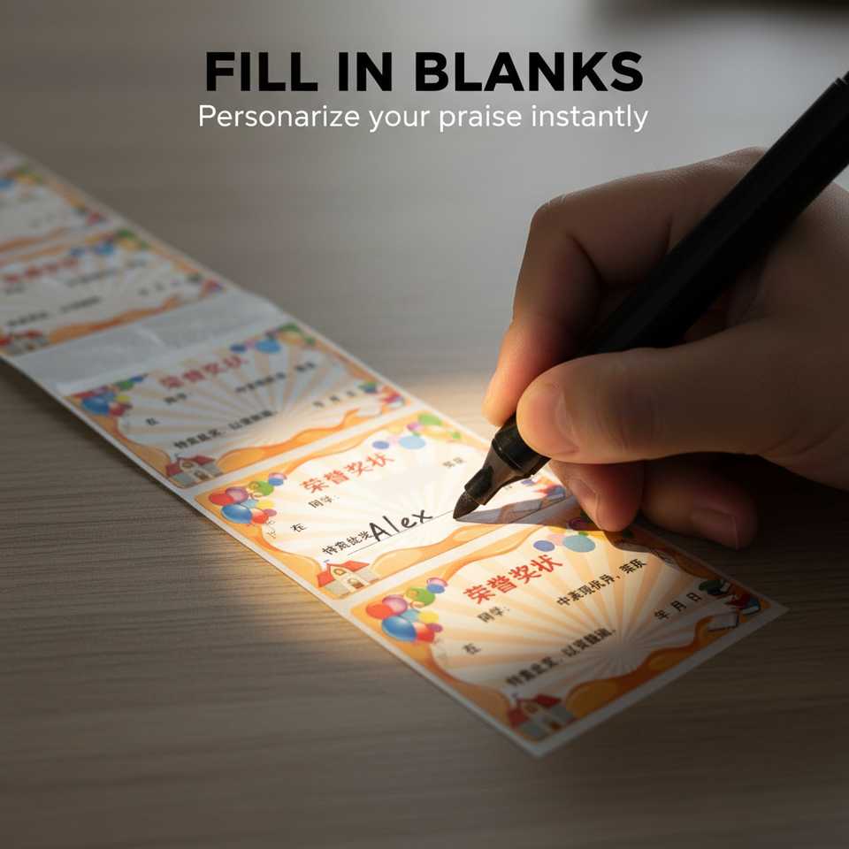 Mini rollos de pegatinas para certificados: etiquetas de recompensa autoadhesivas para que los profesores y los padres lo rellenen y lo utilicen para estimular el interés en el aula