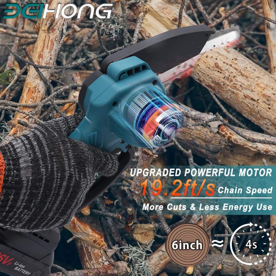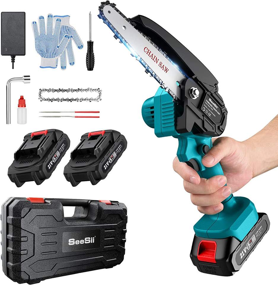 Mini Motosierra de 6 Pulgadas con 2 Baterías, Motosierras Inalámbricas con Bloqueo de Seguridad, Motosierra Pequeña Portátil para Cortar Madera y Árboles